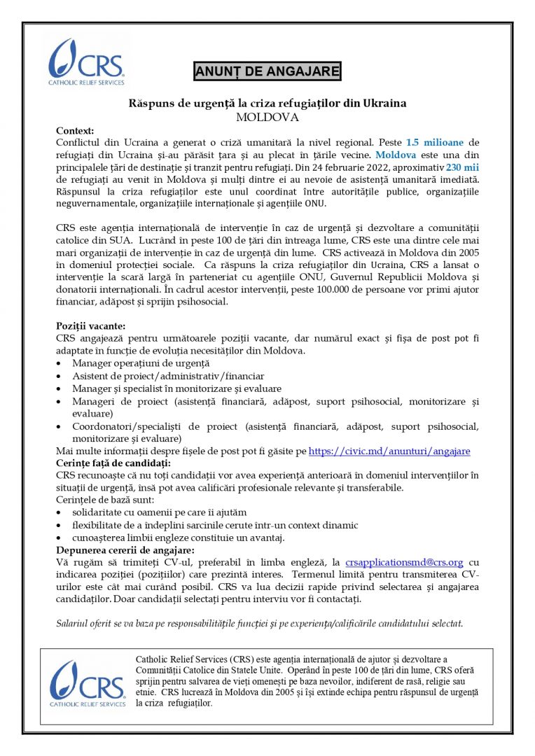 The post Anunţ privind oportunităţile de angajare în echipa de răspuns la criza refugiaţilor appeared first on ASEM.