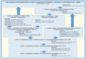 Ţinem să menţionăm, că rădăcinile actualului departament sunt din anul 1962 când în cadrul Universităţii de Stat din Chişinău a fost formată catedra „Contabilitate şi statistică”, care pe parcursul anilor a fost supusă multiplelor modificări, atât în ceea ce priveşte denumirea catedrei, componenţa nominală a cadrelor didactice, cât şi apartenenţa instituţională. Dar, care a reuşit să transmită din generaţie în generaţie valorile profesionale aferente domeniului cât şi cele didactice.