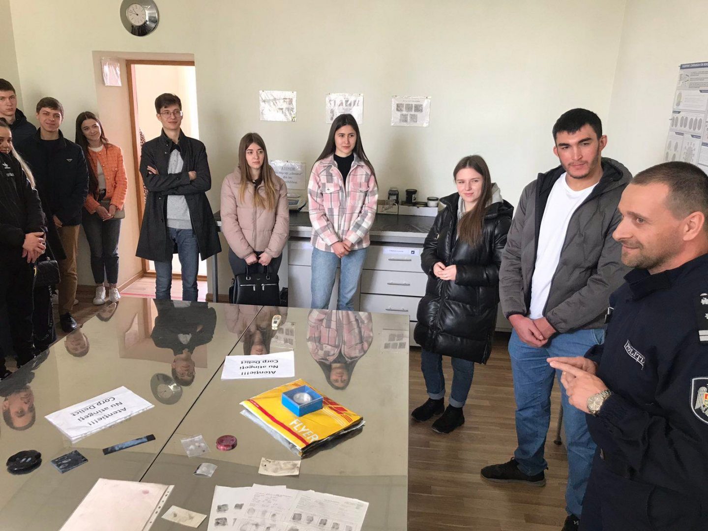 Vizita a avut drept scop familiarizarea studenţilor, care la moment studiază disciplina „Criminalistica”, cu pincipiile şi modul de organizare a activităţii instituţiei. Participanții au avut posibilitatea să perceapă anumite detalii ale unor procese precum depistarea falsului în acte, hârtii de valoare, bancnote etc. Expresii precum: ”examinări şi evidenţe dactiloscopice, examinări fizice, sistem balistic autorizat, expertiza dactiloscopică a armelor albe, cea traseologică, tehnică a documentelor, grafoscopică, balistică şi a portretului, examinări speciale ale materialelor, substanţelor şi articolelor, examinări auto-tehnice, examinări fonoscopice, examinări ale tehnologiilor informaţionale”, au prins contur și sens practic pentru cei 20 de studenți de la Drept.