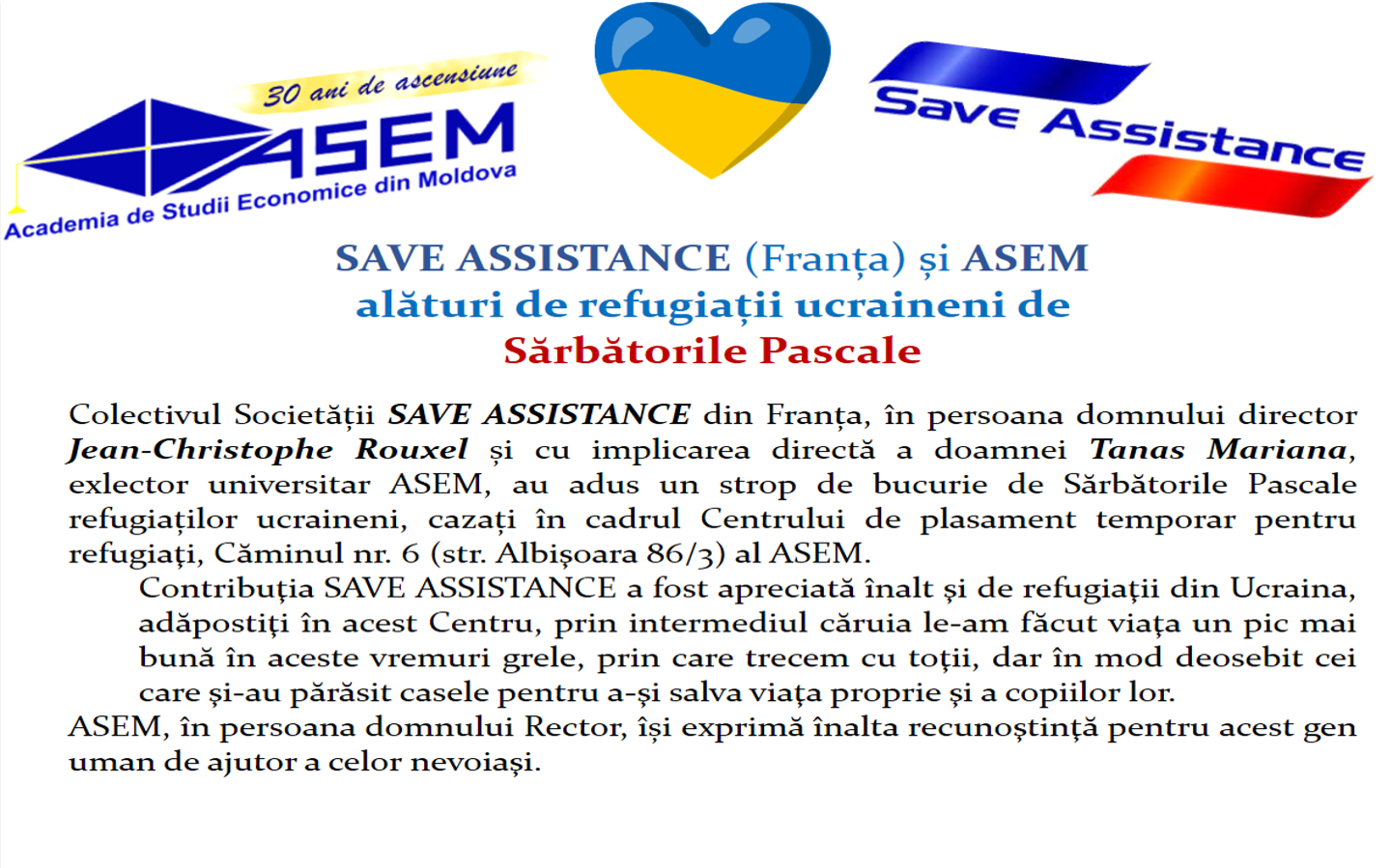 The post SAVE ASSISTANCE (Franța) și ASEM alături de refugiații ucraineni de Sărbătorile Pascale appeared first on ASEM.