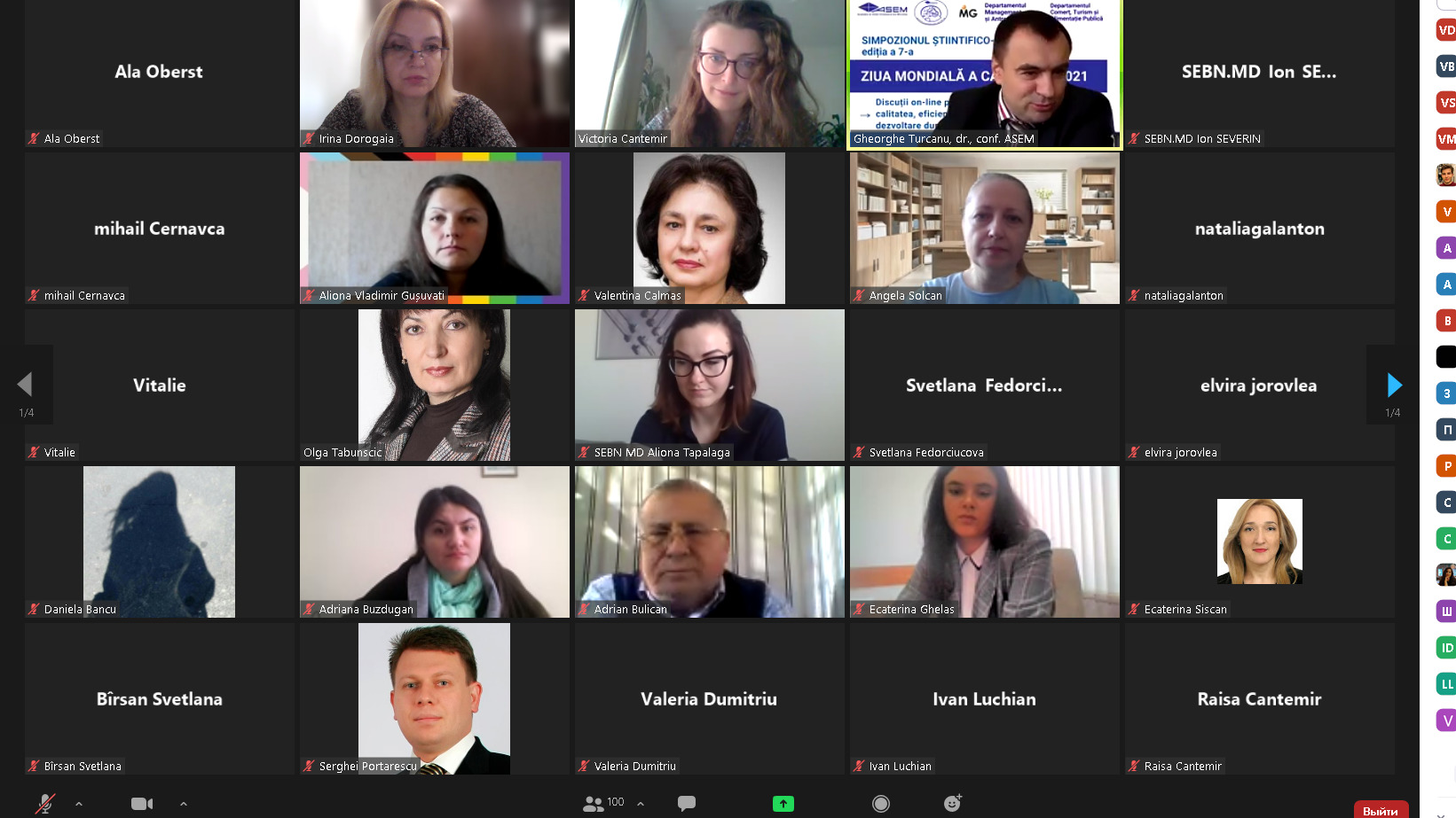 Pe data de 11 noiembrie 2021, cu prilejul Zilei Mondiale a Calității, Departamentul „Management și Antreprenoriat” și „Departamentul Comerț, Turism și Alimentație Publică”, din cadrul Facultății „Business și Administrarea Afacerilor”, au organizat cea de-a 7-a ediție a Simpozionului științifico-practic în domeniul calității cu genericul ”Sustenabilitatea: îmbunătățirea produselor destinate consumatorilor și planetei”. Temele abordate au fost unele de ordin practic și de mare interes pentru toți cei preocupați de domeniul calității.